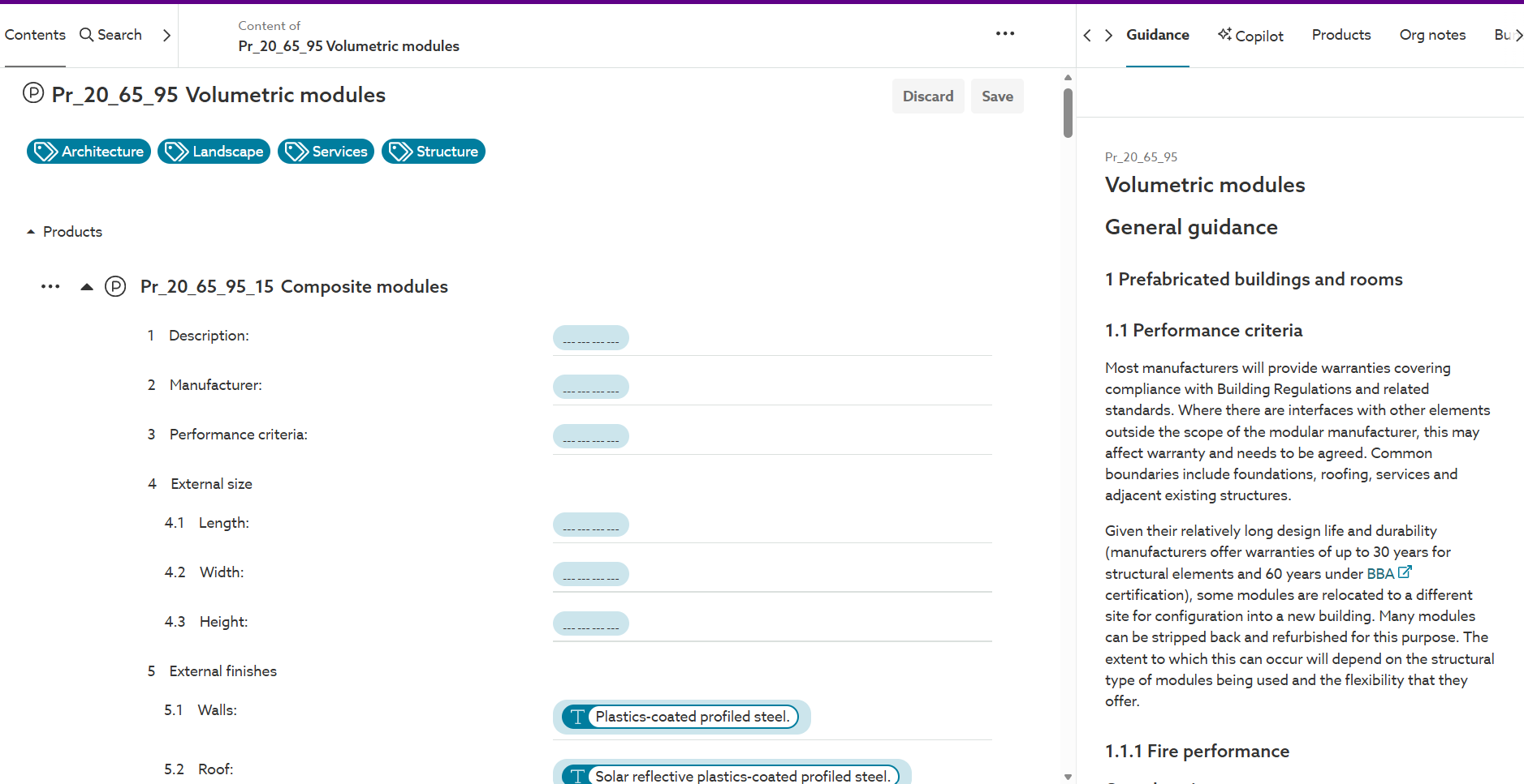 The benefits of using modular products, however, rely on having clear, precise specifications which help to manage risk and ensure compliance with performance, health and safety, and regulatory requirements throughout the project.